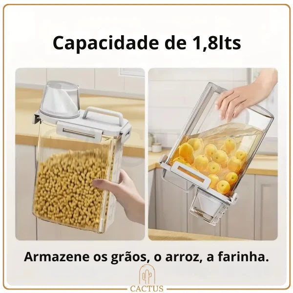 O Pote Hermético MultiDose foi pensado para quem quer manter grãos, cereais e mantimentos sempre organizados, secos e fáceis de servir.